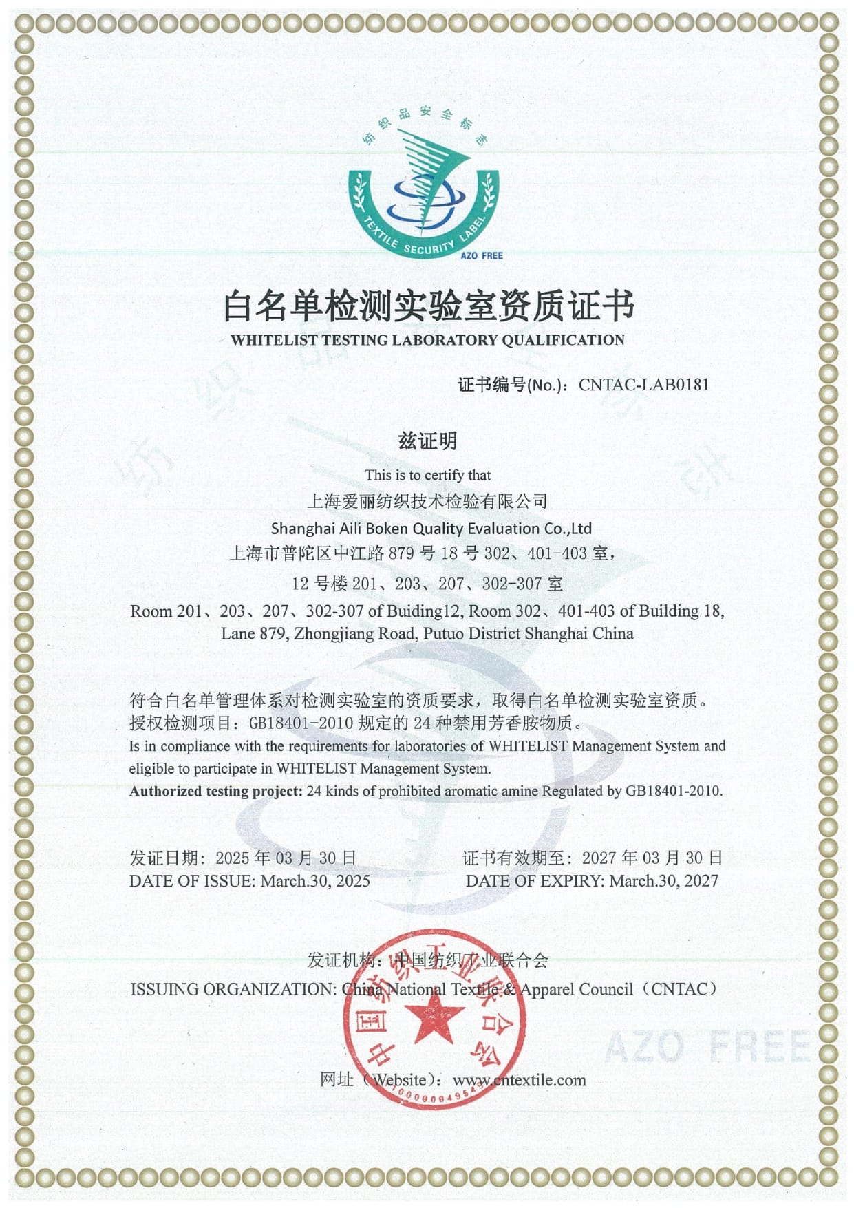 (注冊號:CNAS L4275)